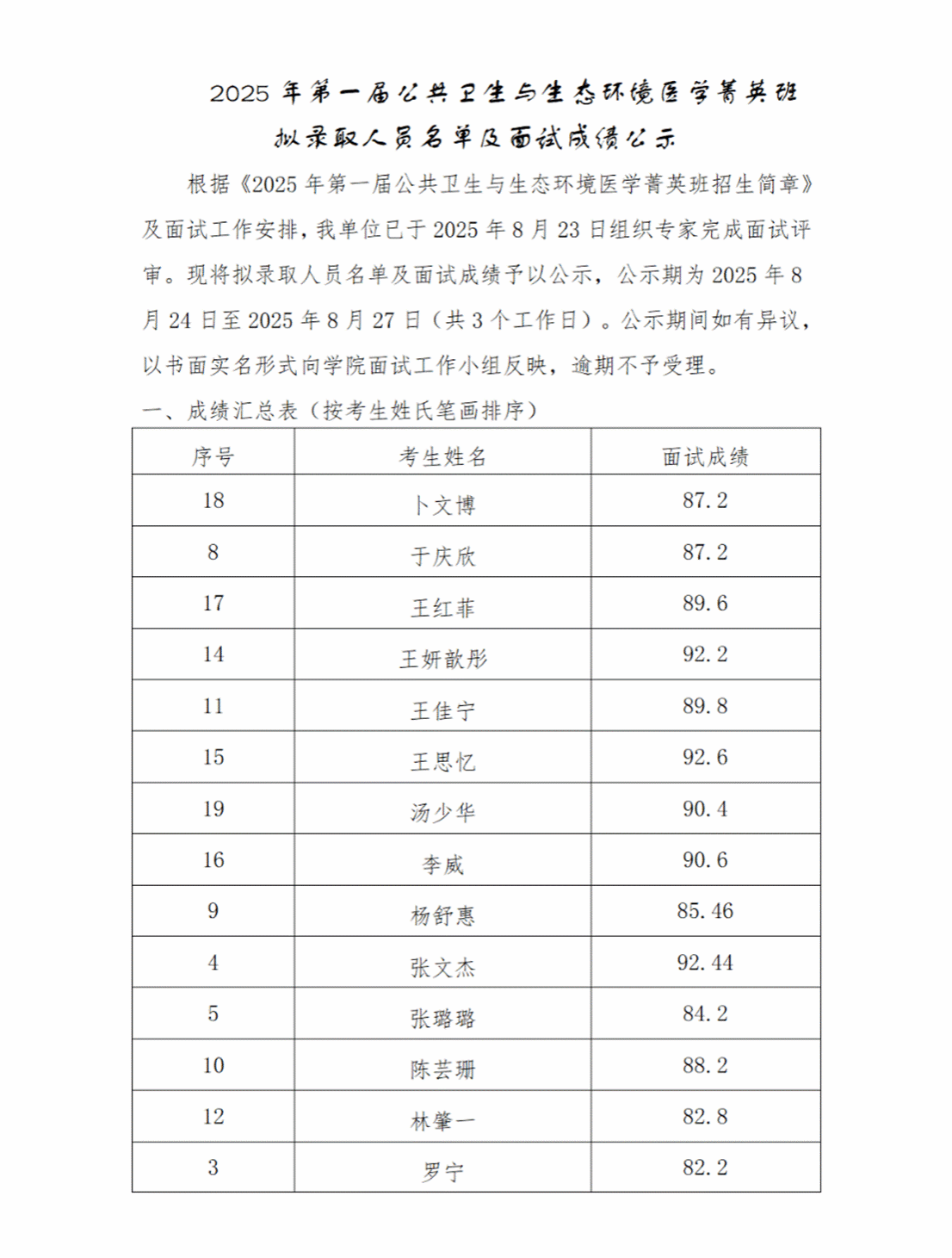 第一届菁英班选拔标椎严格,主要标椎包括但不限于是预防医学、临床医学、基础医学等相关专业大二本科生,同时学分绩点排名位于本专业前 40%,且综合素质突出、已通过英语四级。选拔工作自启动以来,吸引了众多学子踊跃报名。经过学术成绩评定、综合素质考核、专家面试等多轮严格筛选,最终19名同学脱颖而出,成功入选首届菁英班。