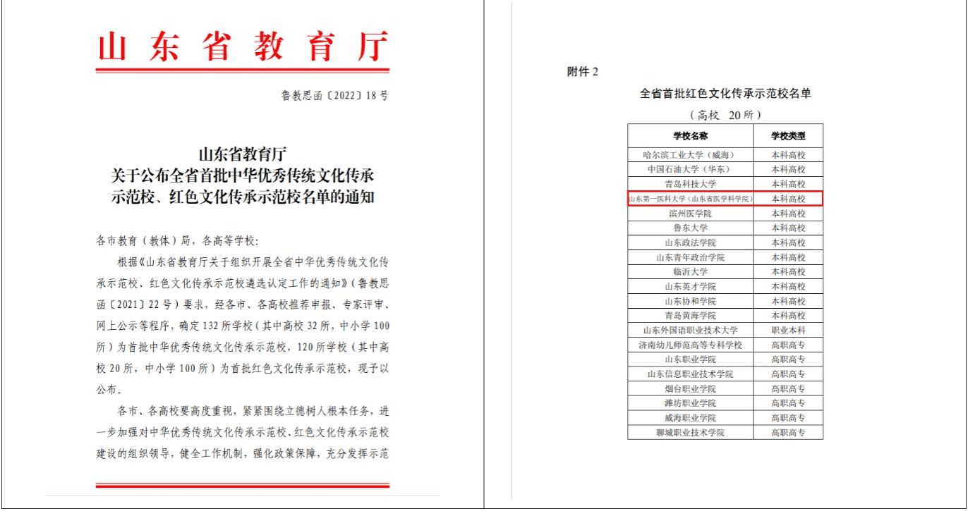 山东第一医科大学荣获“全省首批红色文化传承示范校”