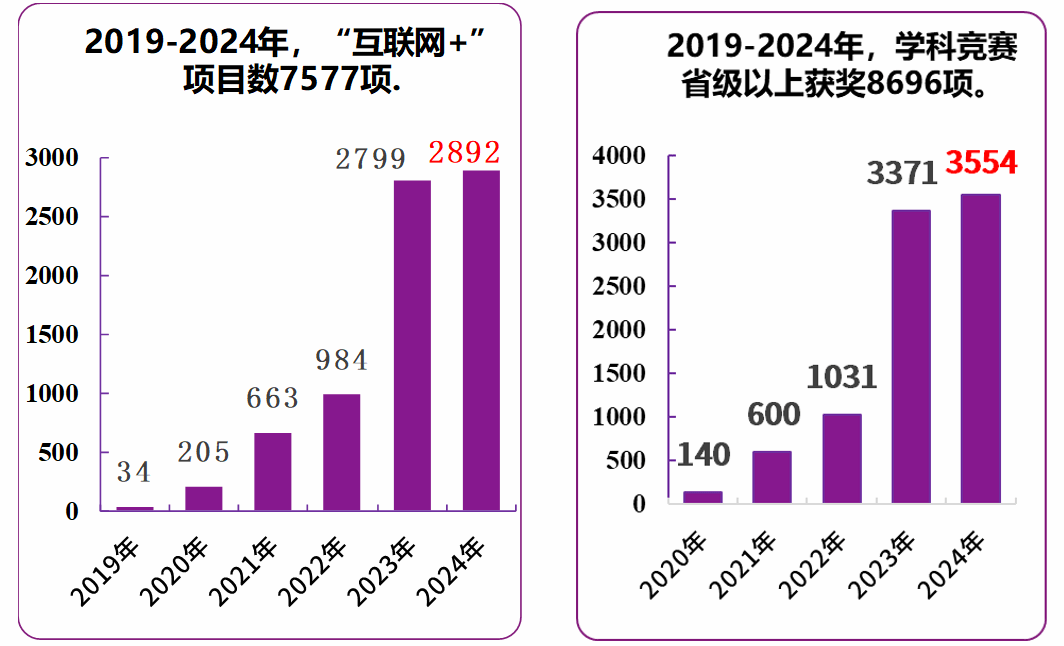 科研成果进竞赛。近三年,中国国家“互联网+”创新创业大赛、“挑战杯”中国大学生创业计划竞赛国赛金奖、铜奖,省赛金奖项目等全部来自科教融合学院,由科研人员指导、科研项目转化。