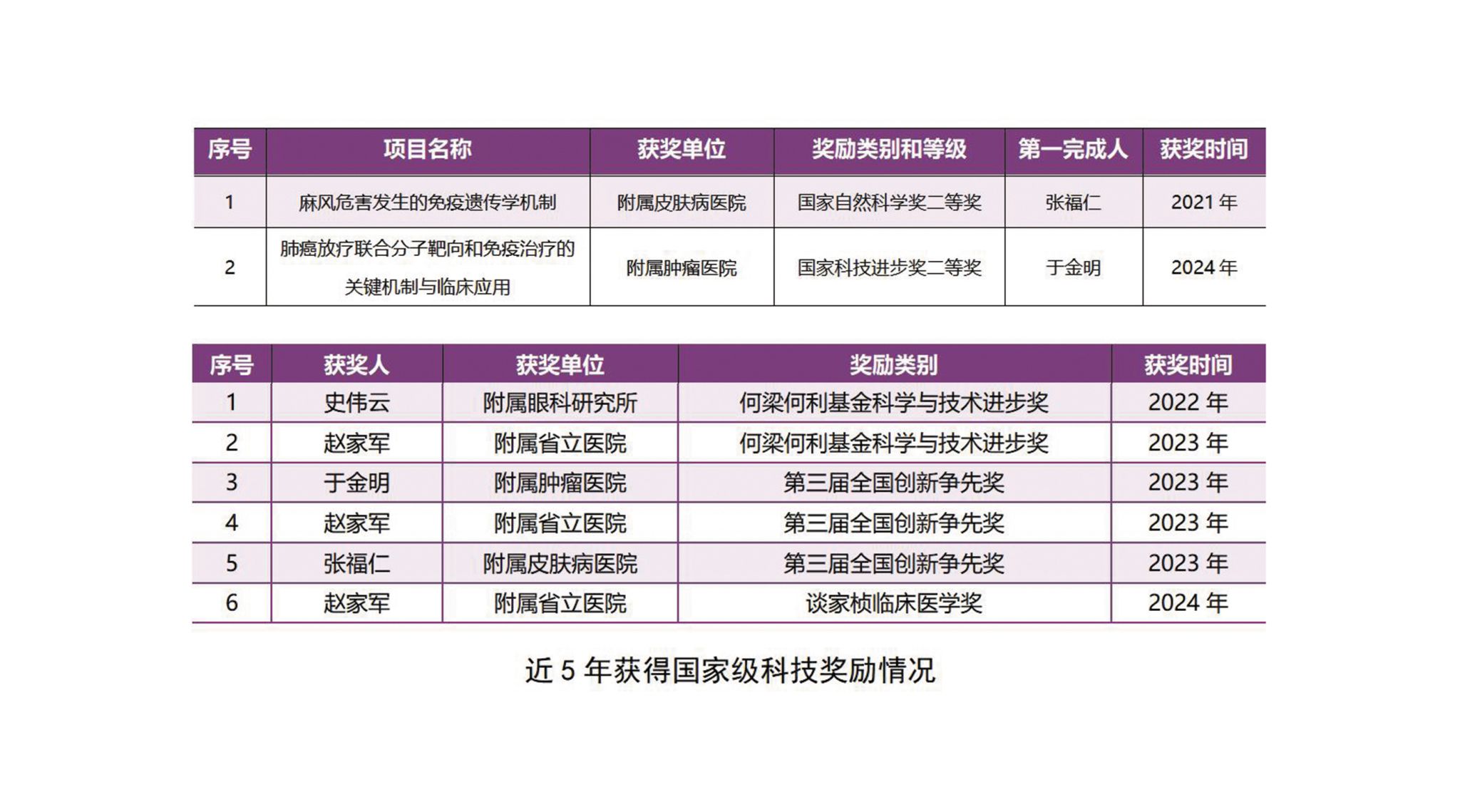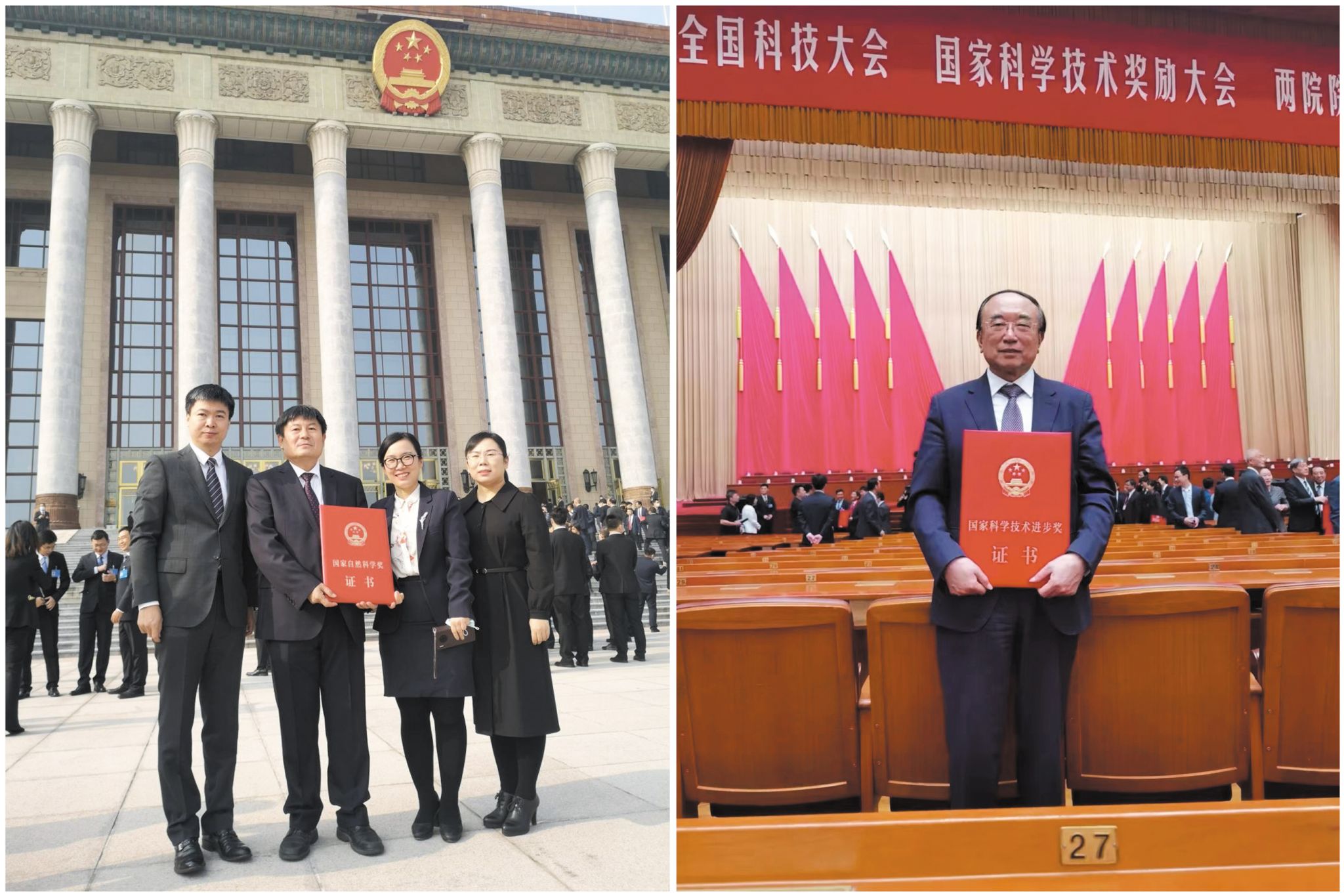 左图张福仁教授主持的项目荣获国家自然科学奖二等奖;右图于金明院士主持的项目荣获国家科学技术进步奖二等奖